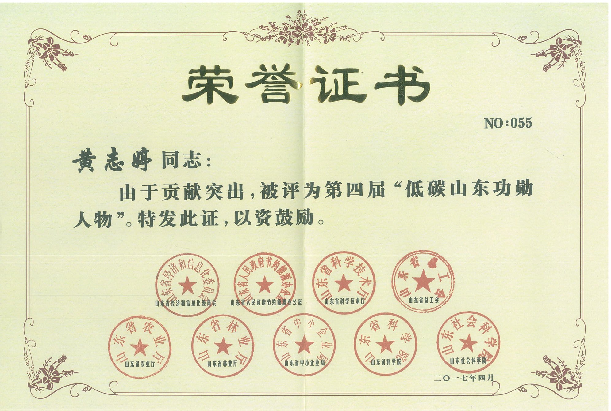 公司總經(jīng)理黃志婷榮獲第四屆“低碳山東功勛人物”