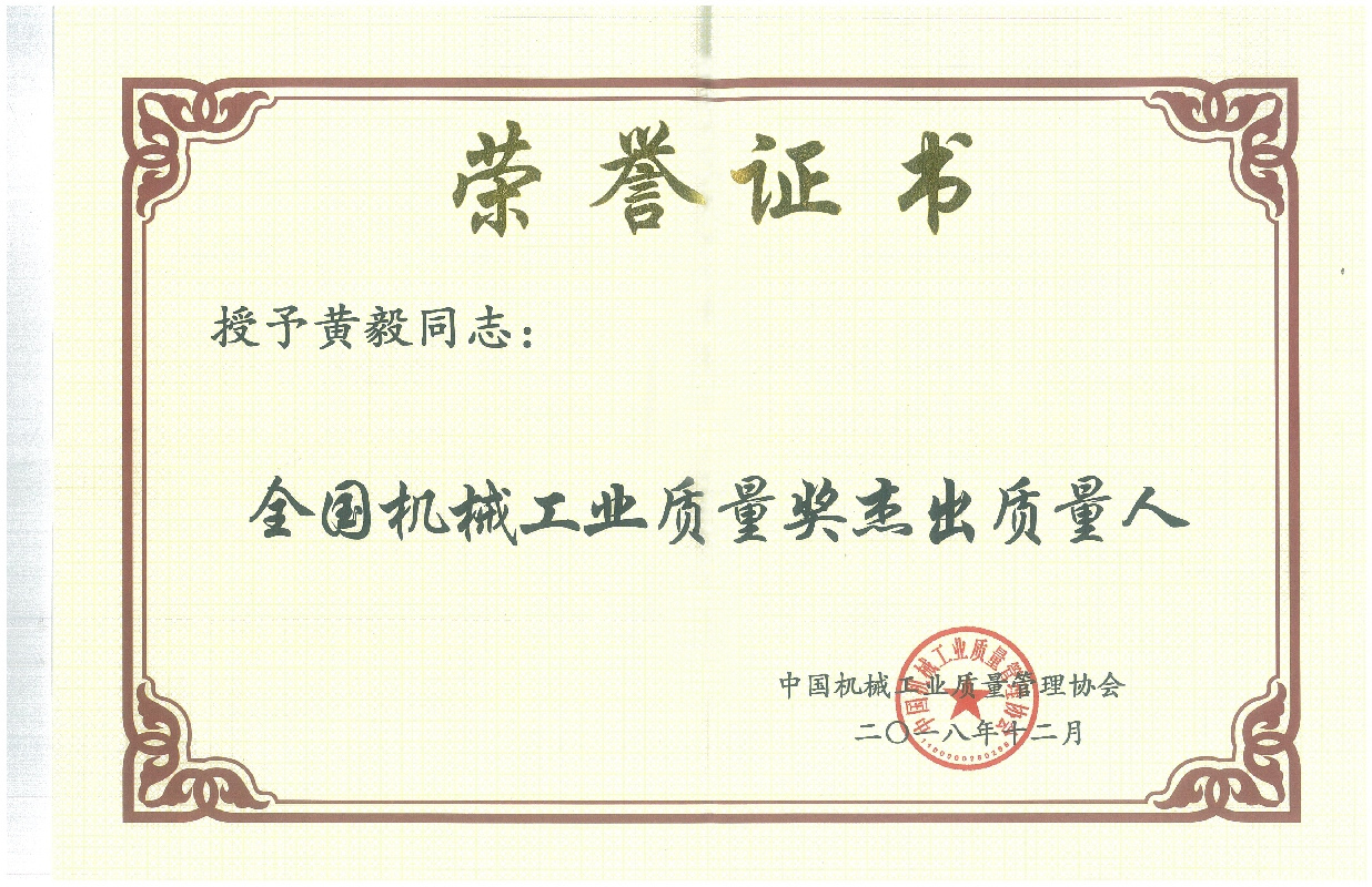 黃毅董事長榮獲“全國機(jī)械工業(yè)質(zhì)量獎(jiǎng)杰出質(zhì)量人”榮譽(yù)稱號(hào)