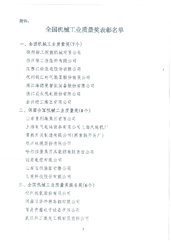 摘要:黃毅董事長榮獲“全國機(jī)械工業(yè)質(zhì)量獎(jiǎng)杰出質(zhì)量人”榮譽(yù)稱號(hào)
