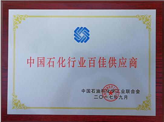 中國石油和化工行業(yè)百佳供應商證書