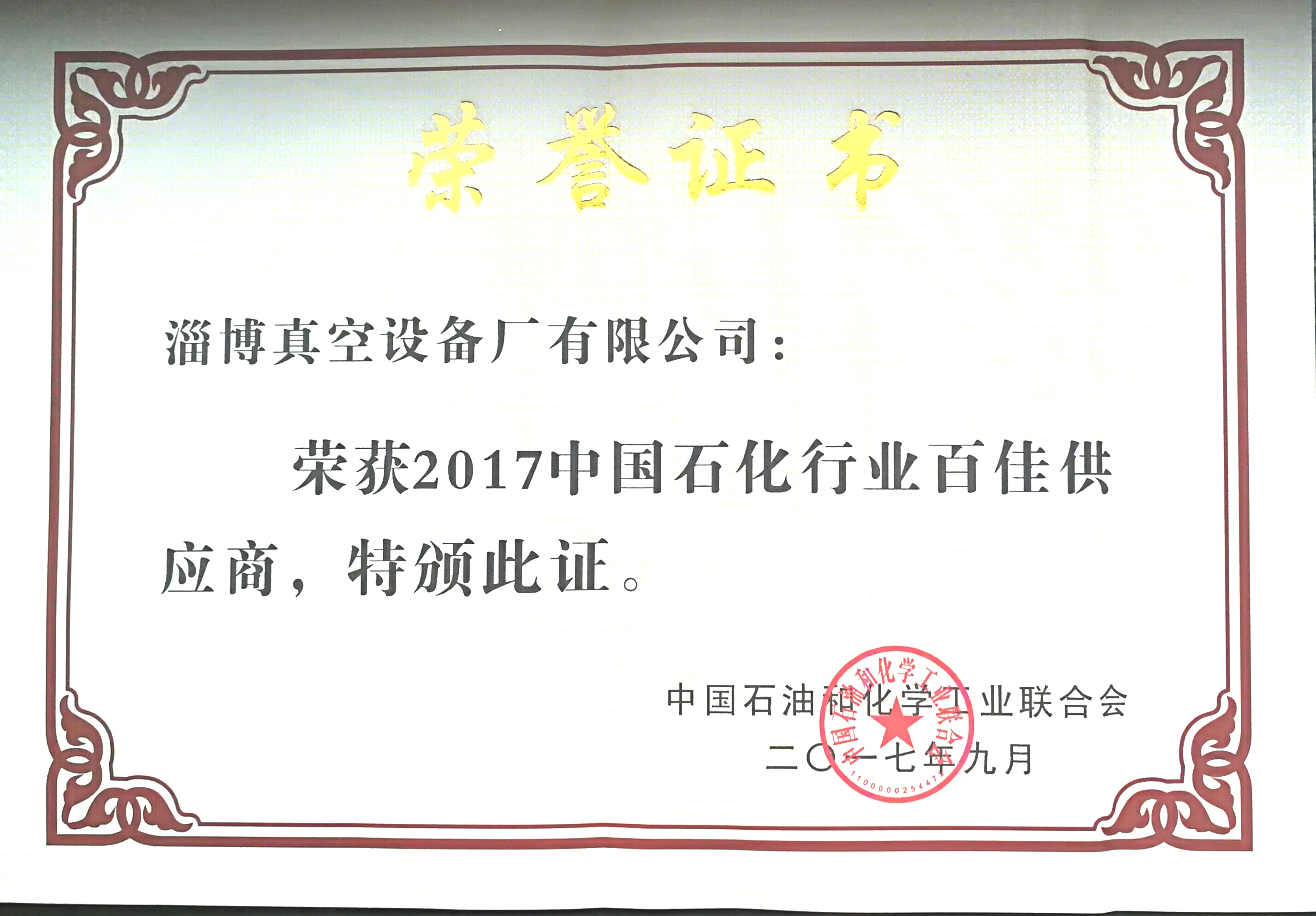 雙山真空榮獲“2017中國石油和化工行業(yè)百佳供應商”殊榮
