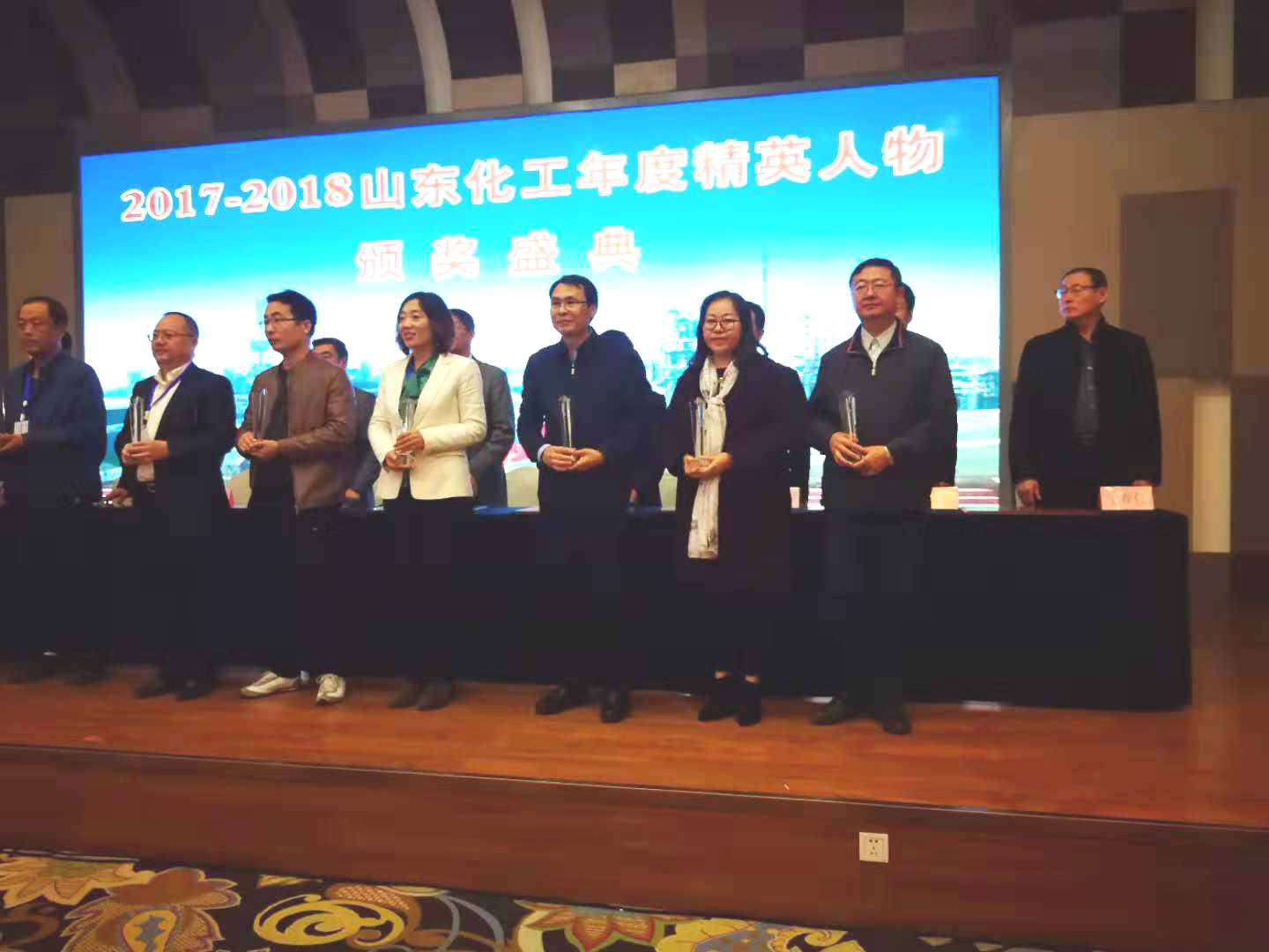 10月31日,由山東省化工信息中心、大眾日報社大眾網(wǎng)主辦的2018(第六屆)中國化工產(chǎn)學研高峰論壇在濟南召開。論壇揭曉了“2017-2018山東化工年度精英人物和山東化工行業(yè)明星單位”名單,舉辦了隆重的頒獎儀式,公司總經(jīng)理被授予“2017---2018山東化工精英人物”榮譽稱號,并參加頒獎大會。